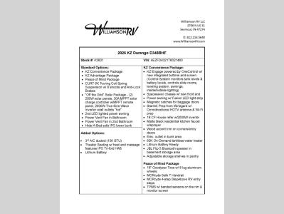 Williamson RV is not responsible for any misprints, typos, or errors found in our website pages. Any price listed excludes sales tax, registration tags, and delivery fees. Manufacturer pictures, specifications, and features may be used in place of actual units on our lot. Please contact us @812-216-5640 for availability as our inventory changes rapidly. All calculated payments are an estimate only and do not constitute a commitment that financing or a specific interest rate or term is available.