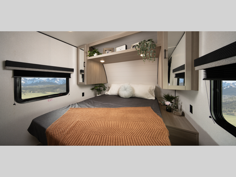 Open Range RV Colt travel trailer 21QB highlights: Front RV Queen Bed Exterior ... more about Colt 21QB